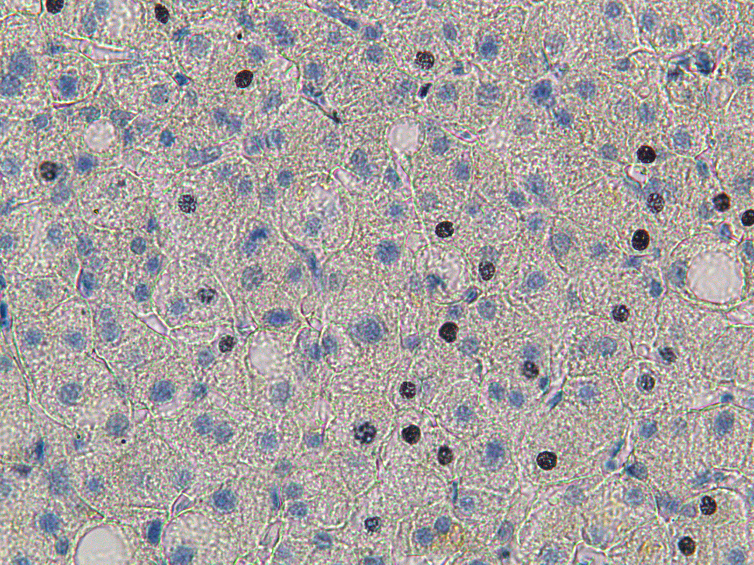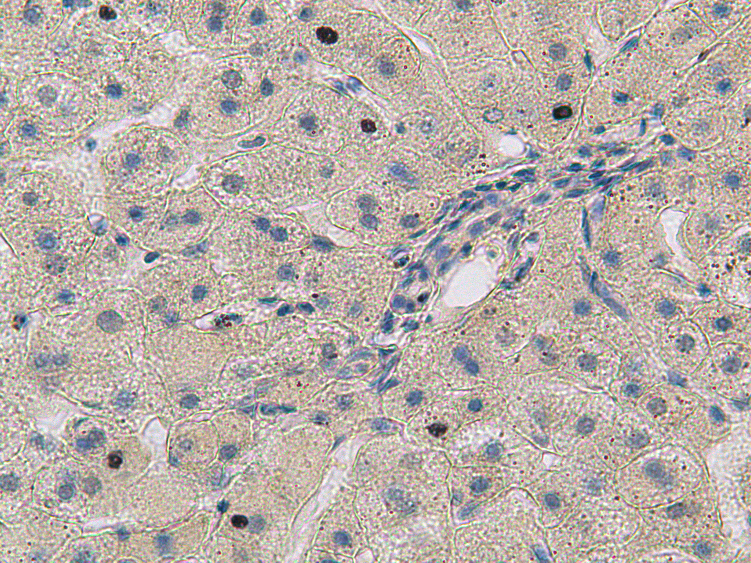 Subjects and methods: Liver biopsies of patients with heroin abuse and coinfection of tuberculosis, chronic hepatitis C, human immunodeficiency virus (TB, HCV, HIV) were investigated. For comparison liver biopsies of patients with chronic hepatitis B (HBV) were used. All biopsies were performed according to routine medical program, using standard Mengini procedure. Material was fixed in formalin, embedded in paraffin and cut 7 micrometers in thickness. For immunohistochemical detection endogenous peroxidase activity was blocked with 3% hydrogen peroxide and the sections were stained using Immunohistochemistry kit according to the manufacture’s guidelines. Cleaved Caspase-3 (Asp175) served as primary antibody. Biotinylated secondary antibody and streptavidin-conjugated peroxidase were used for detection using DAB as chromogen. Nuclei were counter stained with Harris Hematoxylin. Negative controls did not contain primary antibodies. In addition to the immunohistochemical study of Caspase-3 numerical score was established for each biopsy specimen both for grading of necroinflammatory activity (Knodell et al.) and stage of fibrosis (French METAVIR).