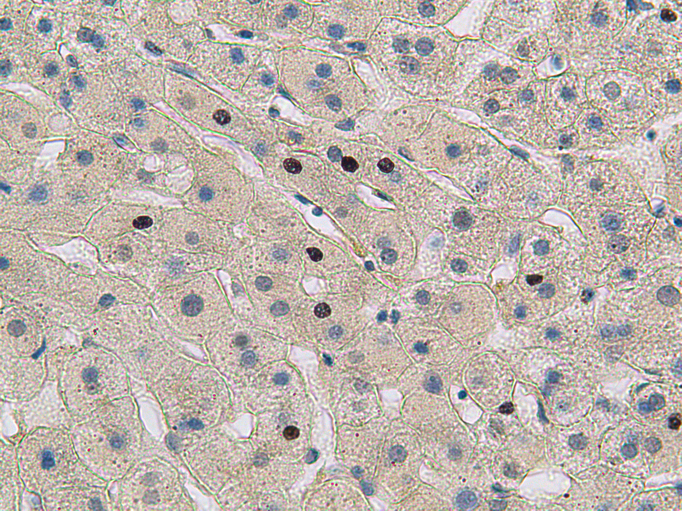 Results: Our investigation showed that positive reaction of Caspase-3 strongly varies in different liver biopsies; activation is revealed in nuclei and cytoplasm of hepatocytes and some Kupffer cells as well as in endotheliocytes of sinusoids. In portal tracts the activation occurs in some endotheliocytes of interlobular portal veins, in cells of lymphohistiocyte infiltrates. In liver biopsies of patients with coinfection the Caspase-3 expression was noticed in 30-50% of nuclei, whereas in liver biopsies of patients with HBV mono infection the index did not exceed 10%. Index of histological activity according to Knodell of patients with coinfection reached 12-15 balls, fibrosis stage according to METAVIR – F2; in patients with HBV these indexes were respectively 4 balls and F-1.